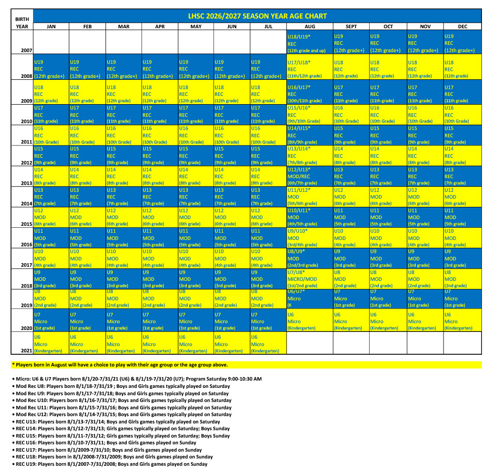 LHSC Birth Year and Season Matrix 2026-2027